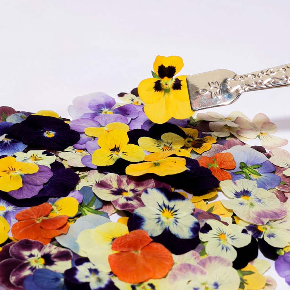 ورد فايولا مجفف مقطوف يدويا يستخدم لتزيين الكيك, المشروبات, القهوة, الماتشا, اطباق الحلى, السلطات, و اكثر!